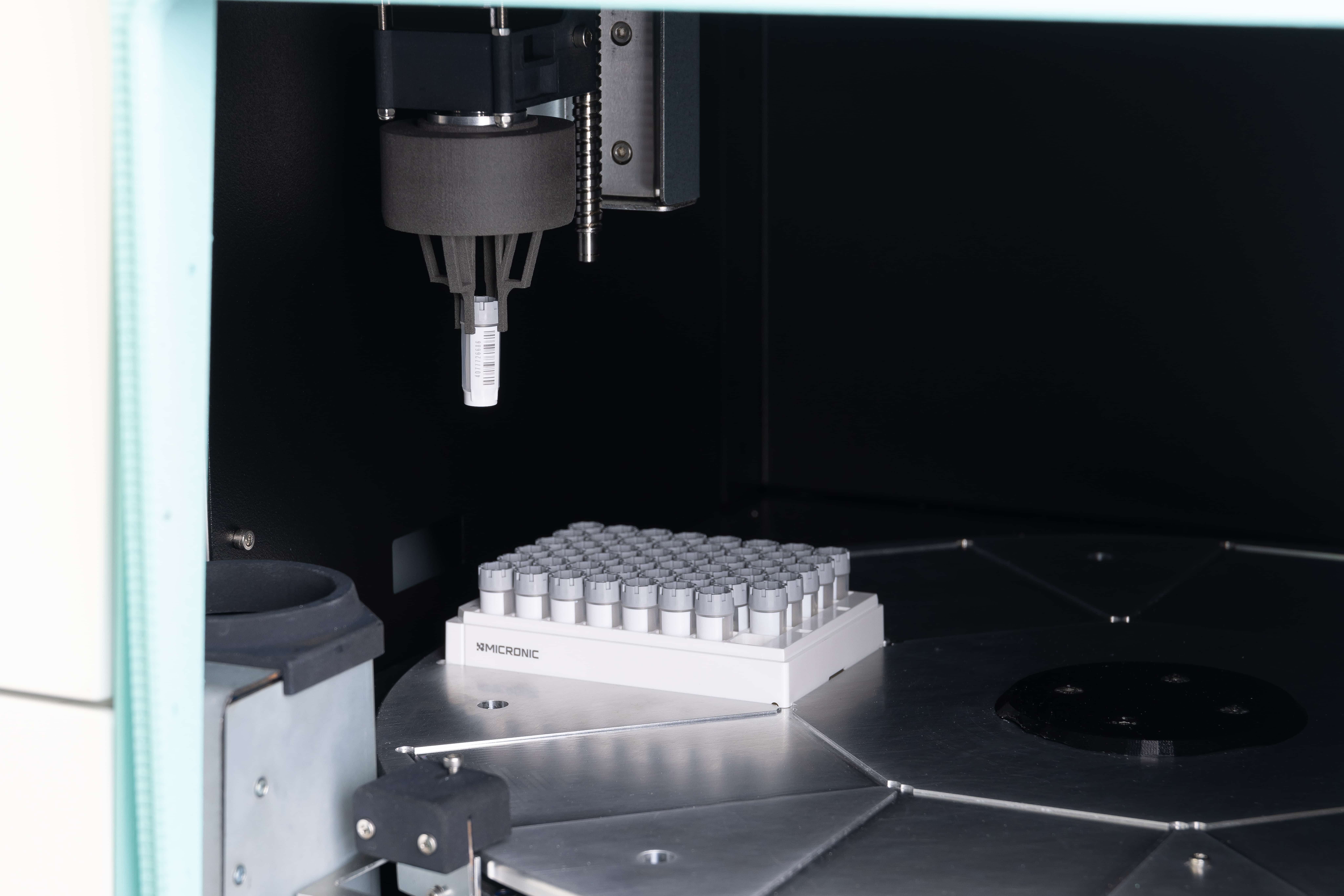 Durch die Integration eines Roboterarms kann der Lambda768 nahtlos in automatisierte Systeme eingebunden werden (durch Entfernen der Seitenwand), was die Workflow-Automatisierung weiterhin verbessert. Das System ist kompatibel mit Röhrchen führender Marken wie MICRONIC, Azenta, LVL-Technologies uvm., was eine maximale Flexibilität bedeutet.